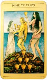 In the Ace of Cups we see Aphrodite rising out of the frothy ocean in all her glory and power. She is the goddess of Love and called the Mother of All. This card is about feeling a deep love for yourself, for others and for Spirit, that fortifies and strengthens your own ability to keep that veil of unhappiness away.
